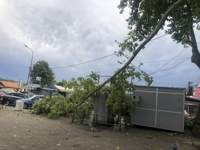Срушено је и неколико стабала у граду, а у квару је и дио електро-мреже.