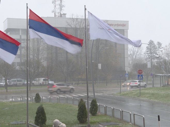Бањалуку је данас захватило снажно невријеме праћено вјетром и обиман снијег.