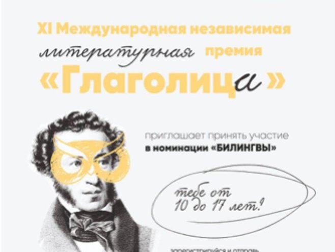 Међународна независна књижевна награда "Глаголица", која се од 2023. године одржава под покровитељством Комисије Руске Федерације за Унеско, најављује почетак прихватања књижевних дјела на руском језику у категорији "Двојезично".