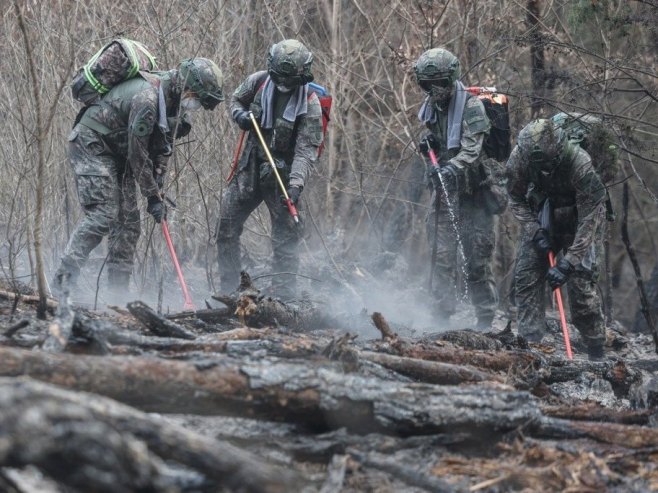 Ватрогасци, користећи хеликоптере, и даље се боре да обуздају шумске пожаре који су захватили југоисточну провинцију Сјеверни Гјеонгсанг, пренијела је агенција Јонхап.