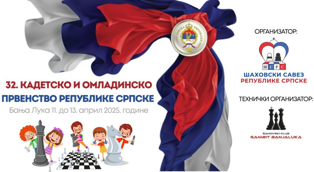 Шаховски савез - Кадетски и омладински појединачни шампионат Републике Српске од 11. до 13. априла
