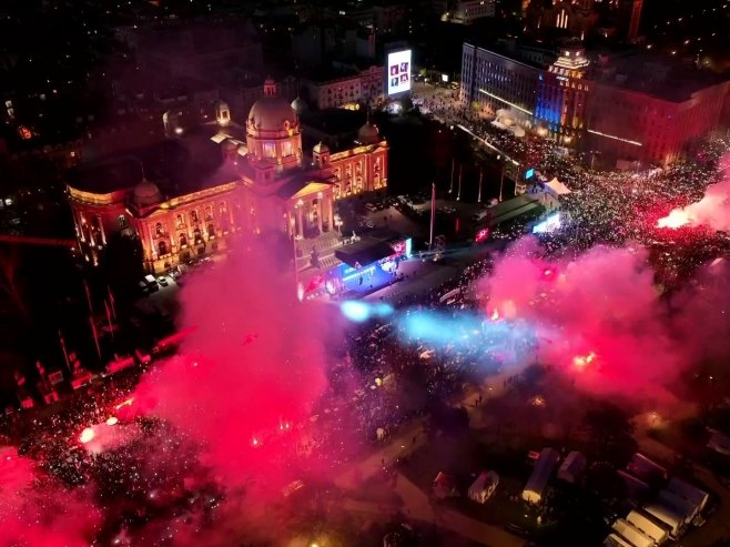 Централани скуп у оквиру тродневног сабора "Не дамо Србију" завршен је вечерас говором предсједника Србије Александра Вучића и величанственим ватрометом изнад платоа Народне скупштине.