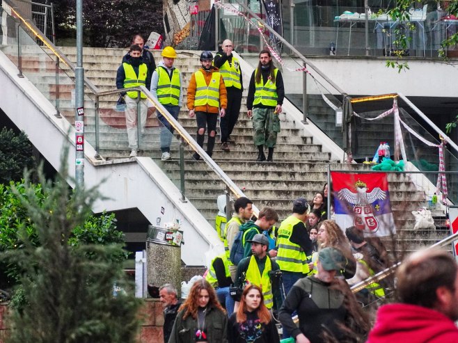 Студенти и грађани бесправно блокирају улазе у објекте Радио-телевизије Србије у Таковској и Абердаревој улици, као и студија на Кошутњаку онемогућавајући запослене да дођу на радна мјеста.