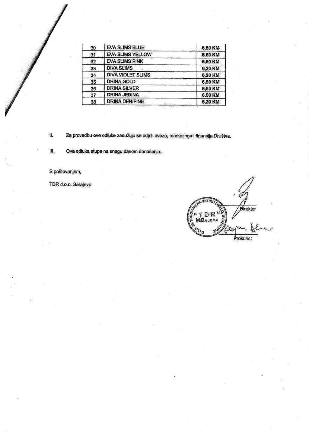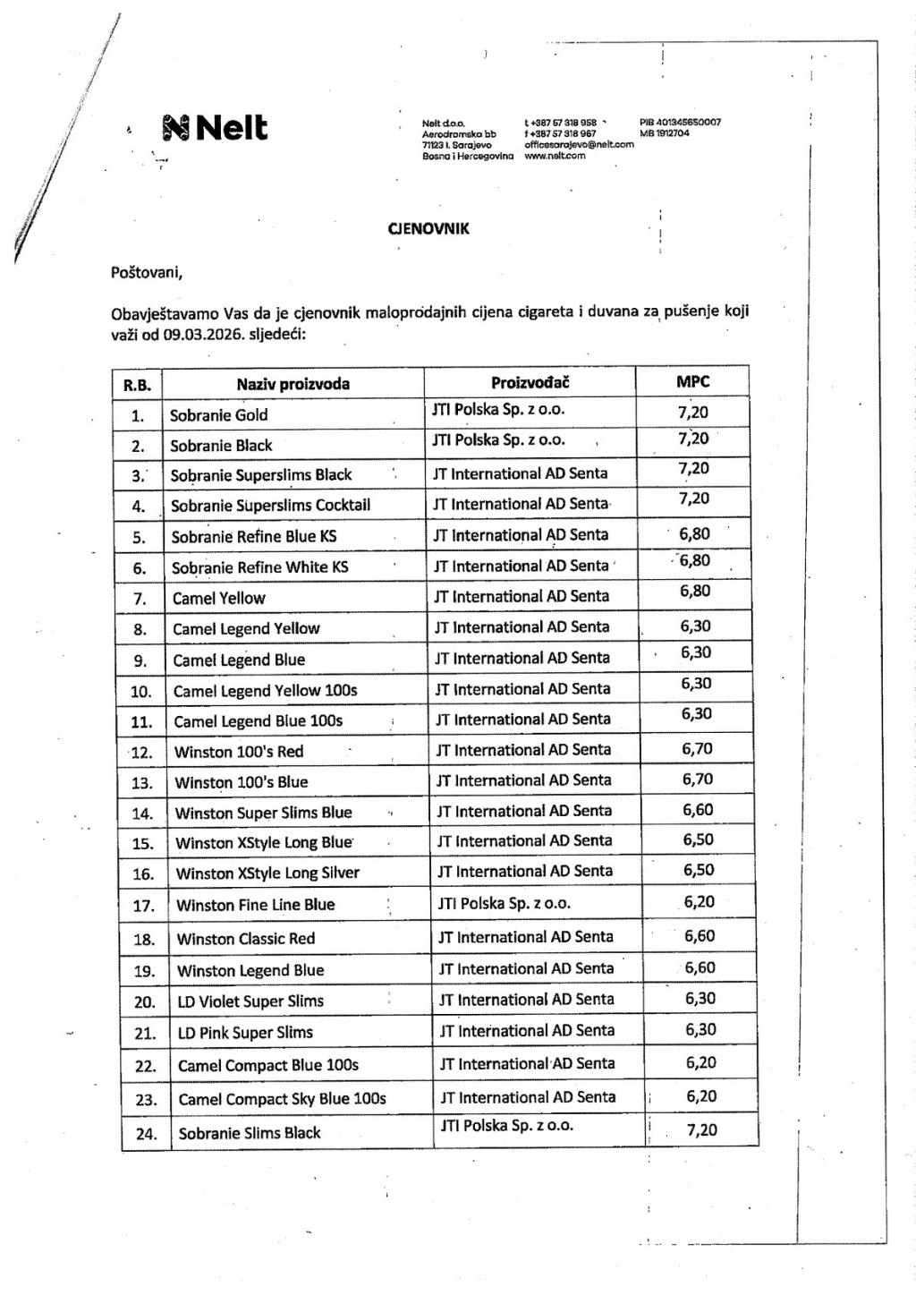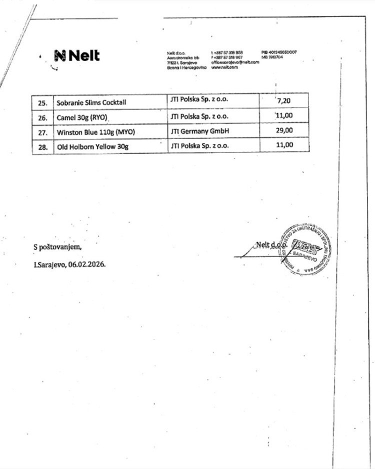 Нове цијене цигарета Управи за индиректно опорезивање (УИО) БиХ доставили су ТДР Сарајево, Филип Морс, те Нелт.